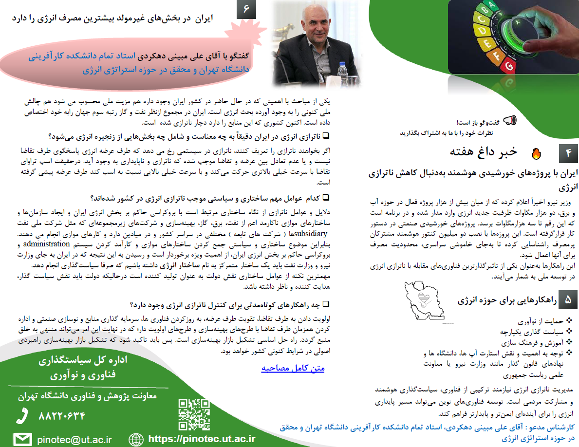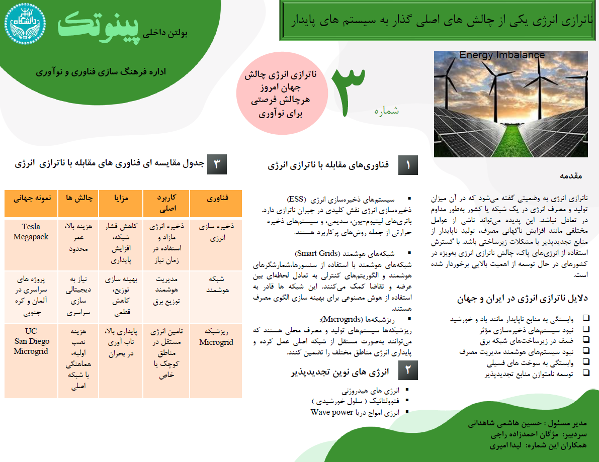 عنوان این شماره: «ناترازی انرژی یکی از چالشهای اصلی گذار به سیستمهای پایدار»